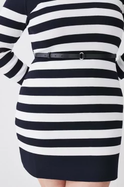 New 🛒 Karen Millen Plus Size Stripe Rib Knit Belted Mini 👗 Dress 🤩
