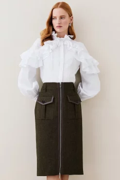 Top 10 ๐งจ Karen Millen Lydia Millen Heritage Tweed Belted Pencil ๐ Skirt – dark green ๐
