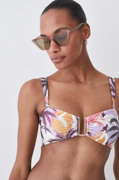 Flash Sale ๐ Karen Millen Palm Print Gold Trim Detachable Strap ๐ Bikini Top – multi ๐